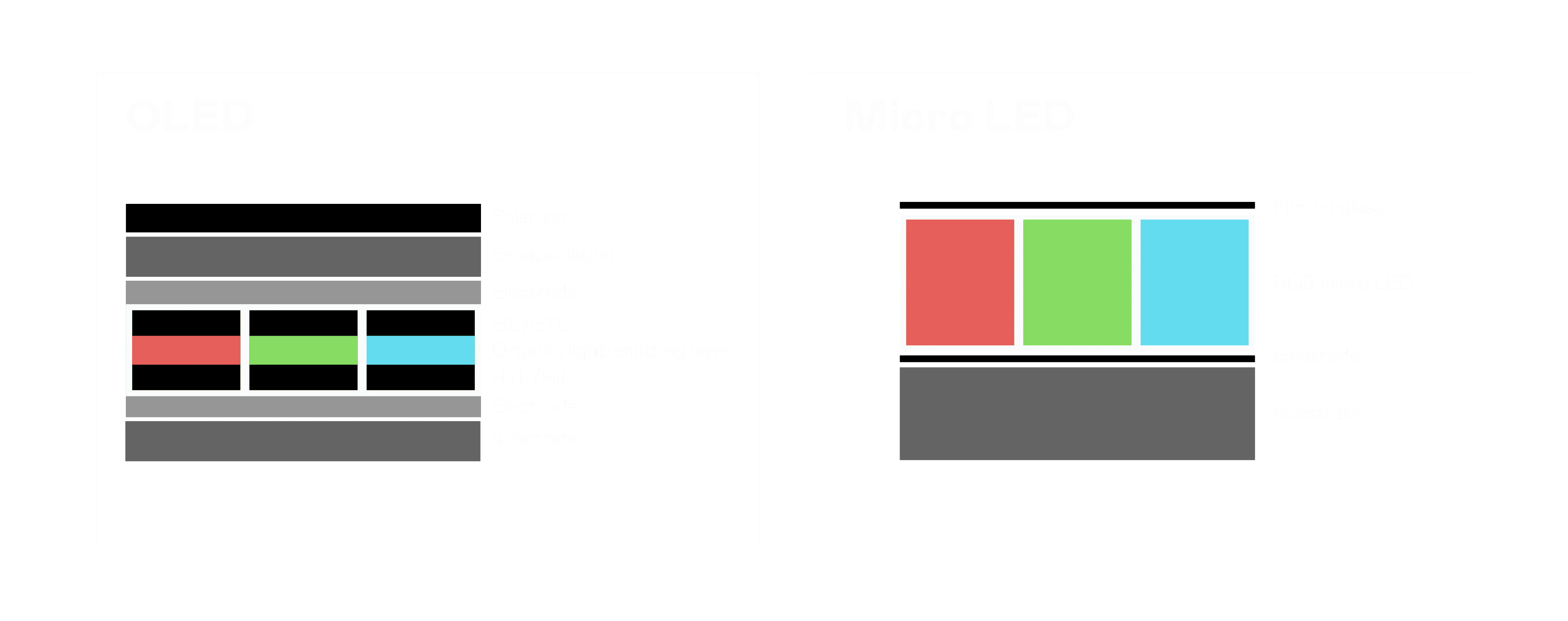 以 LED 做为显示画素,,可让 LED 的发光效率发挥到极致,,从而让显示器具备优异的亮度表现,,,不论是在户外或室内,,,,均具备出众的显示效果。。。。同时,,,,与使用有机材料的 OLED 相比,,LED 具备更稳定、、、寿命更长的特性,,不仅不会有画面烙印问题,,,,而且更不容易出现故障、、、、坏点。。