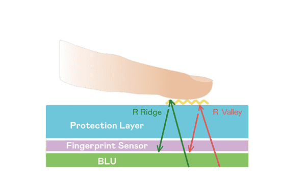 TFT 指纹扫描感测技术利用薄膜电晶体 (TFT) 当作光感测元件,,藉由非晶硅 (a-Si) 与低温多晶硅(LTPS)既有光电转换特性对不同波段光源进行吸收,,,,使感测 IC 读取阵列感测元件的光漏电差异,,,转换成数位灰阶影像。。。。